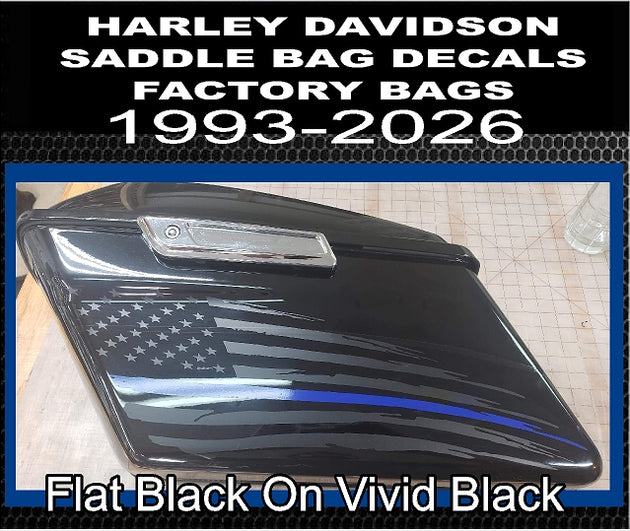 Cbcdecals- American Flag Thin Blue line Side Saddle bag flag Decals custom made to fit 1993-2026 Model "Harley Davidson" Touring Bikes