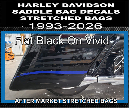 Cbcdecals- American Flag Thin Blue line AFTER MARKET STRETCHED Side Saddle bag flag Decals custom made to fit 1993-20216 Model "Harley Davidson" Touring Bikes