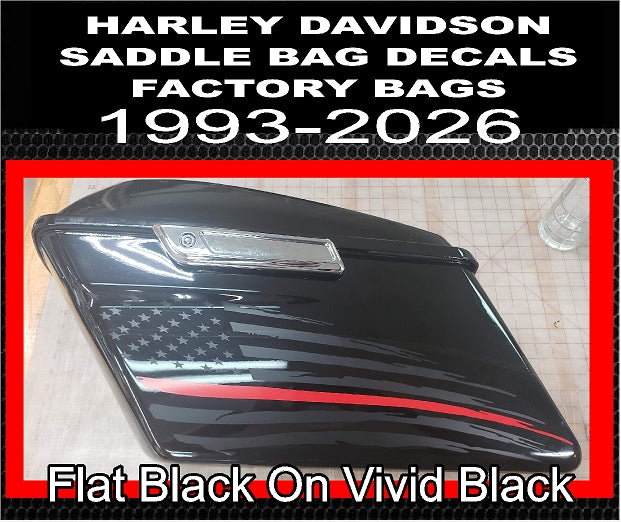 Cbcdecals- American Flag Thin Red line Side Saddle bag flag Decals custom made to fit 1993-2026 Model "Harley Davidson" Touring Bikes