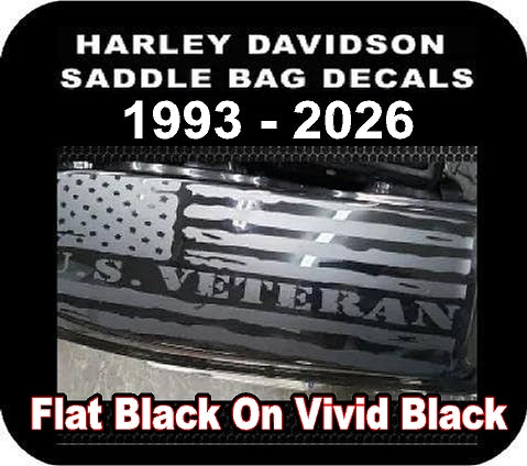 Custom-made American Flag (Veteran) Saddle Bag Lid Decals designed to fit 1993-2025 Model Harley Davidson Touring Bikes. These premium vinyl decals add patriotic style to your bike's saddle bags.