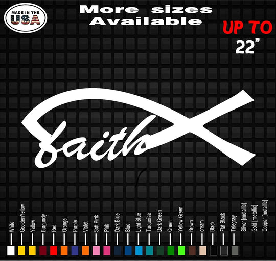FAITH Christian Fish Vinyl Decal Sticker | Ichthys Decals | Car and Truck Window