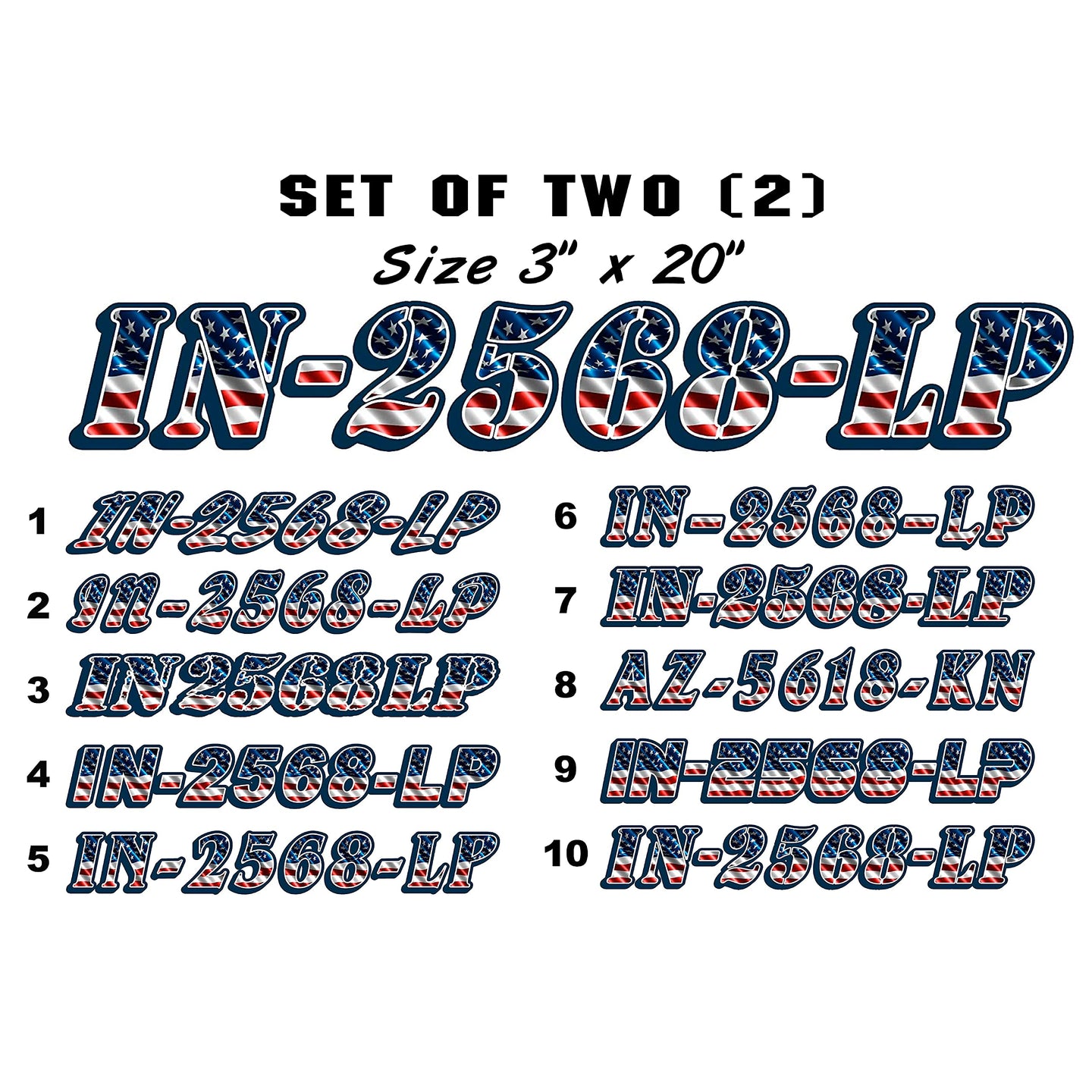• Sold as a set of two (2) registration numbers