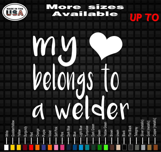 My Heart Belongs to A Welder Vinyl Decal Sticker Welders Wife Welders Girlfriend